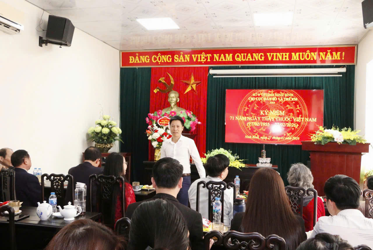 Ngày 27/02/2026, trong không khí phấn khởi của ngành Y tế cả nước, Chi cục Dân số và Trẻ em tỉnh Ninh Bình đã trang trọng tổ chức buổi gặp mặt kỷ niệm 71 năm Ngày Thầy thuốc Việt Nam (27/02/1955 - 27/02/2026) nhằm tôn vinh và tri ân những đóng góp của đội ngũ cán bộ làm công tác dân số, y tế tại đơn vị.