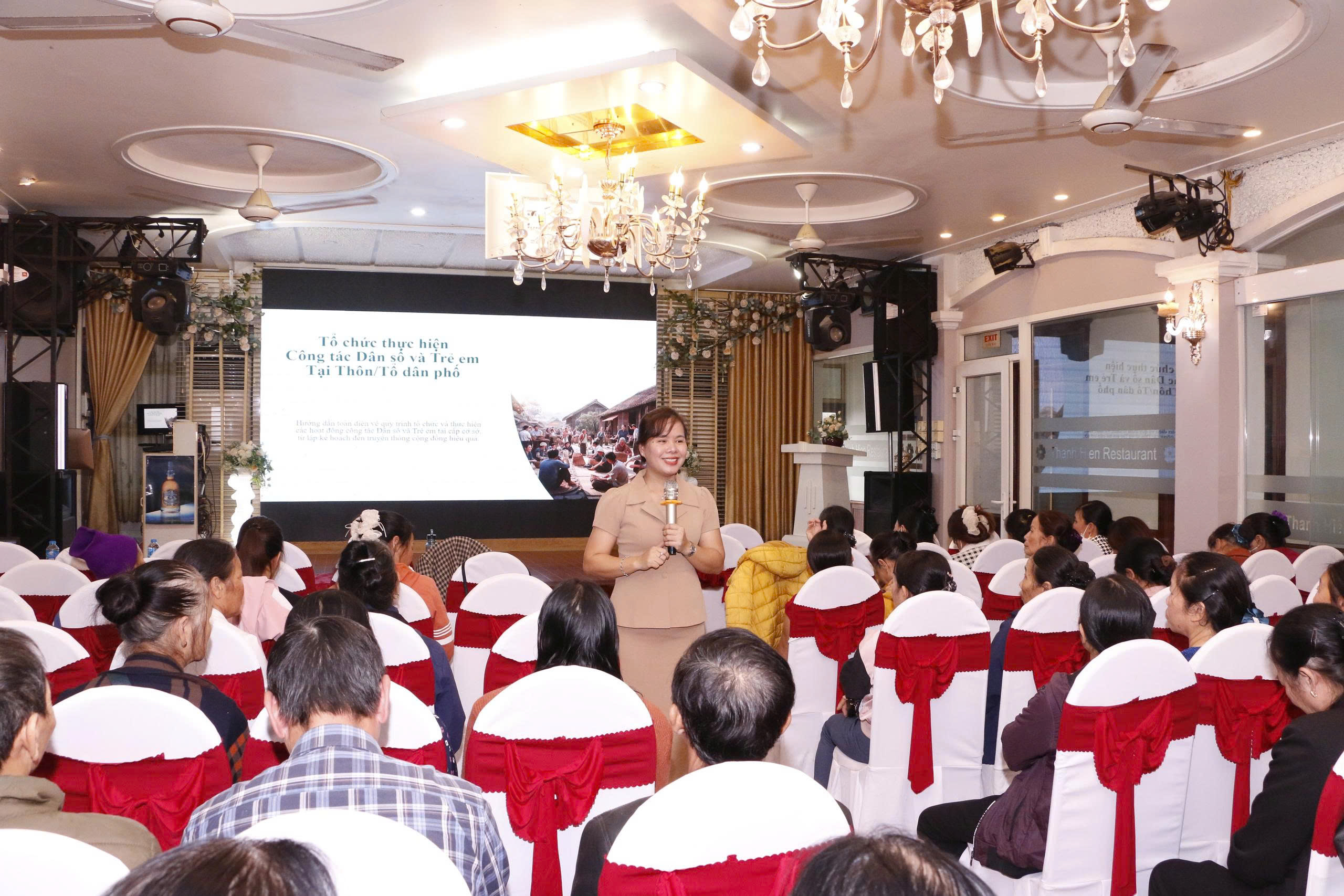 Tại lớp Tập huấn, các đại biểu đã được nghe đồng chí Nguyễn Thị Quỳnh Trang - Phó Trưởng phòng Hành chính - Tổng hợp trao đổi, chia sẻ kiến thức, kỹ năng cơ bản về chuyên môn nghiệp vụ theo định hướng công tác dân số trong giai đoạn hiện nay. Báo cáo viên tập trung các nội dung: Hướng dẫn toàn diện về quy trình tổ chức và thực hiện các hoạt động công tác Dân số và Trẻ em tại cấp cơ sở, từ lập kế hoạch đến truyền thông tại cộng đồng; cách thức phối hợp hiệu quả giữa các tổ chức đoàn thể trong việc thực hiện các hoạt động về Dân số và Trẻ em tại các thôn/tổ dân phố; phương pháp thăm hỏi và hỗ trợ cộng đồng hiệu quả, đặc biệt là kỹ năng truyền thông, vận động nhằm nâng cao chất lượng công tác và hoàn thành tốt nhiệm vụ được giao.