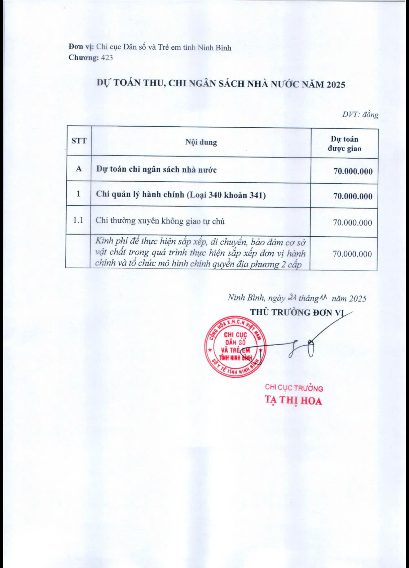Chi cục Dân số và Trẻ em