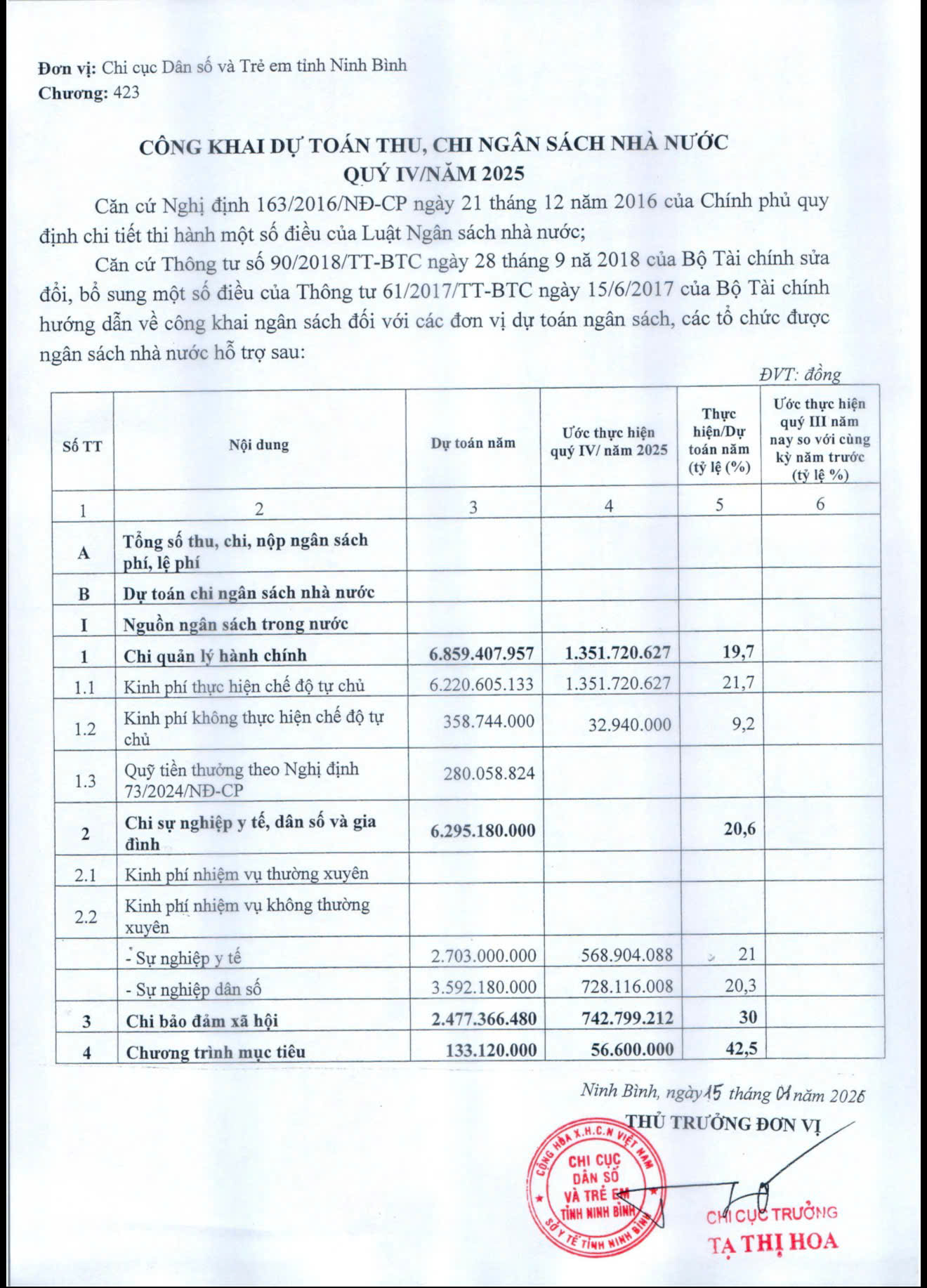 Công khai thực hiện dự toán NSNN quý IV/2025