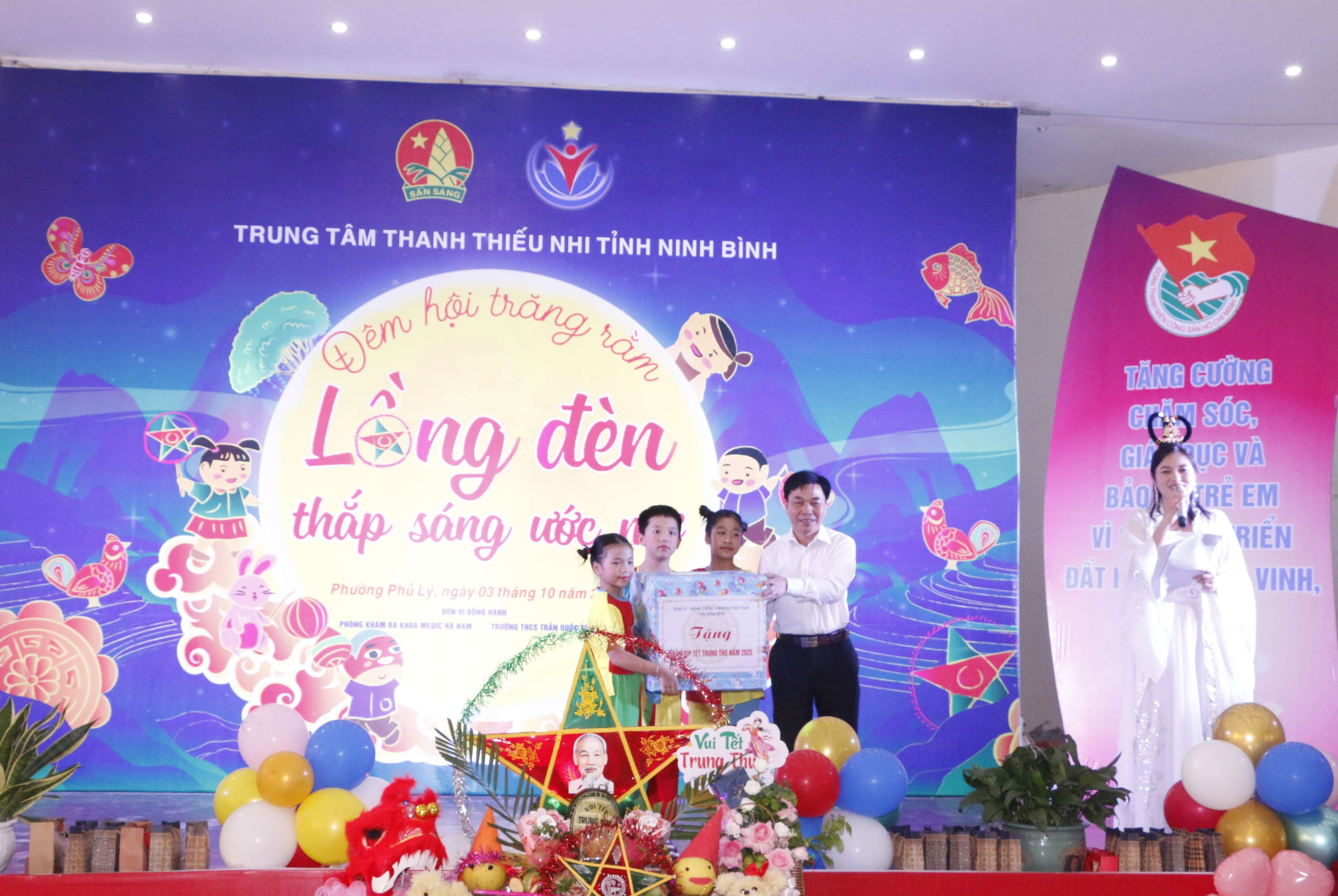 Chiếu ngày 03/10/2025 Đồng chí Trương Thanh Phòng – Phó Giám đốc Sở Y tế tỉnh đã đi thăm, tặng quà các em thiếu niên nhi đồng tại Trung tâm thanh thiếu niên tỉnh Ninh Bình – Khu vực 2 nhân dịp Tết Trung thu. Cùng đi có đồng chí Trần Ngọc Nam – Bí Thư tỉnh Đoàn, Ban Giám đốc Trung tâm Thanh thiếu nhi tỉnh, đại diện Sở Giáo dục và Đào tạo, Chi cục Dân số và Trẻ em.