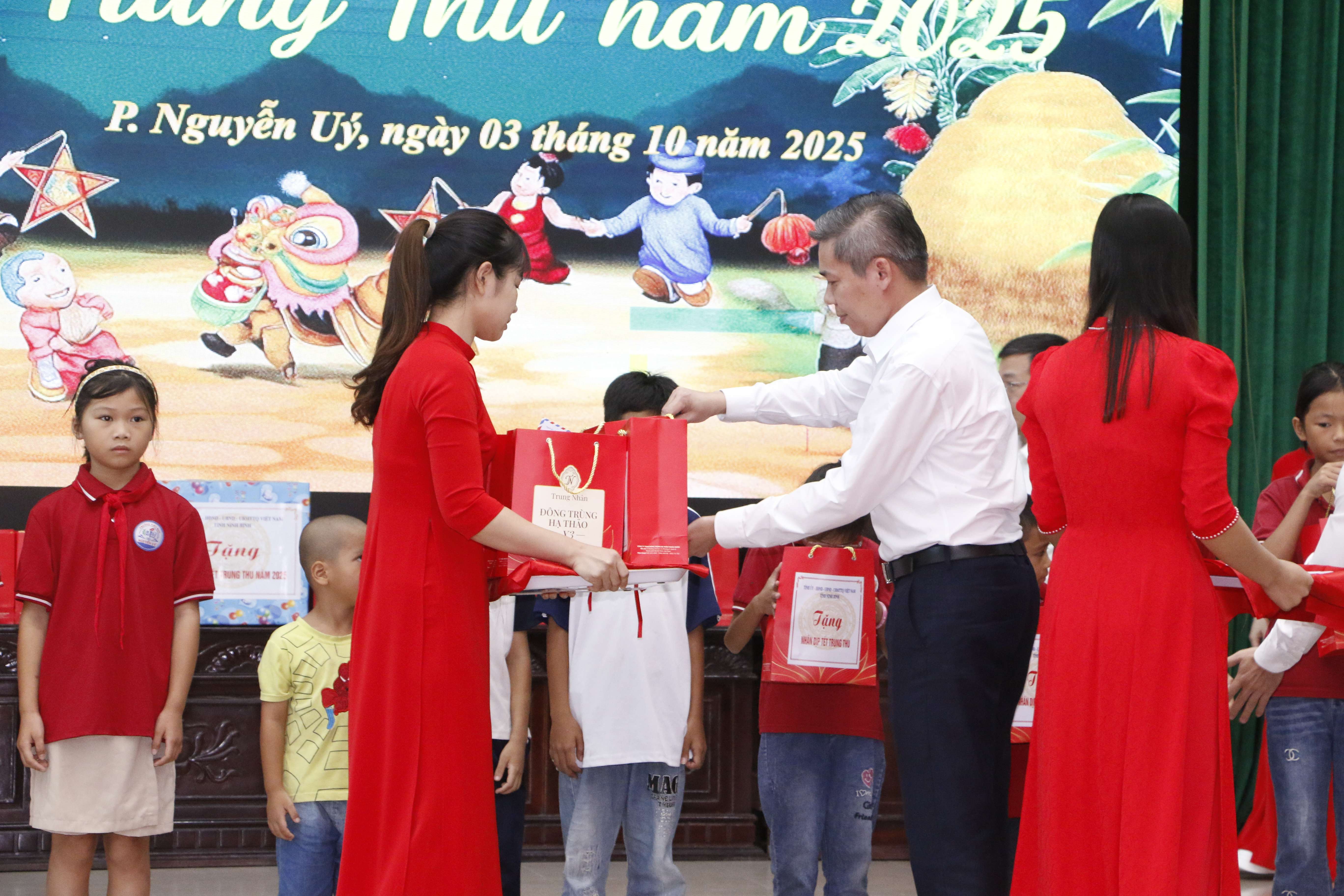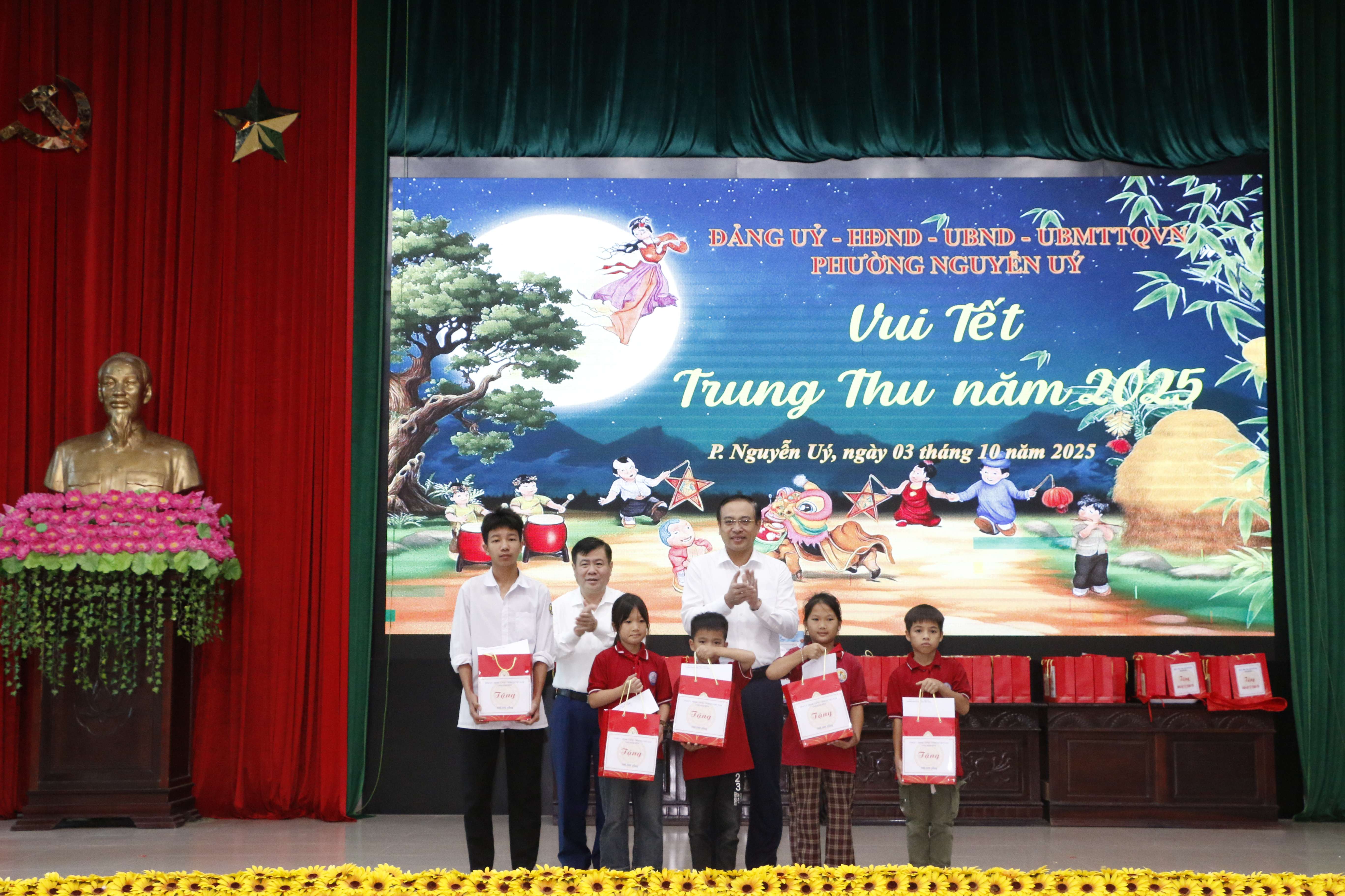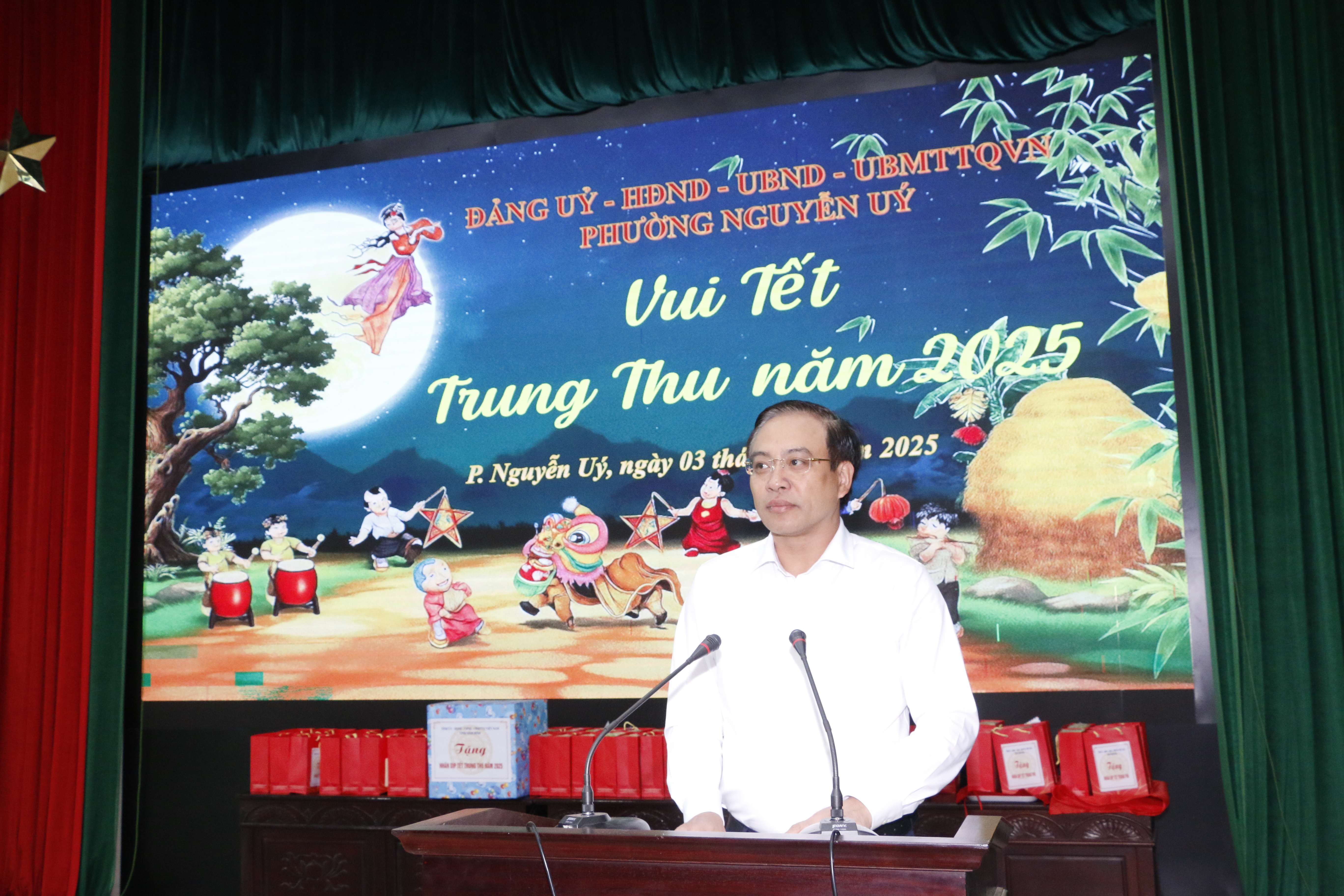 Tại Chương trình, Đồng chí Đặng Thanh Sơn – Phó Chủ tịch thường trực Hội đồng nhân dân tỉnh đã tặng quà các cháu thiếu niên, nhi đồng Phường Nguyễn Úy, gửi lời chúc mừng các em có một mùa Trung thu vui tươi, hạnh phúc, động viên các em nỗ lực học tập, rèn luyện để trở thành người có ích. Đồng thời khẳng định các cấp uỷ Đảng, chính quyền, ban, ngành, đoàn thể luôn dành sự quan tâm đặc biệt cho công tác chăm sóc, bảo vệ và giáo dục trẻ em, tạo điều kiện tốt nhất để các em được phát triển toàn diện cả về thể chất lẫn tinh thần. Tiếp tục lan toả mạnh mẽ tinh thần tương thân tương ái, chia sẻ yêu thương với các cháu thiếu niên, nhi đồng trong thời gian tới.