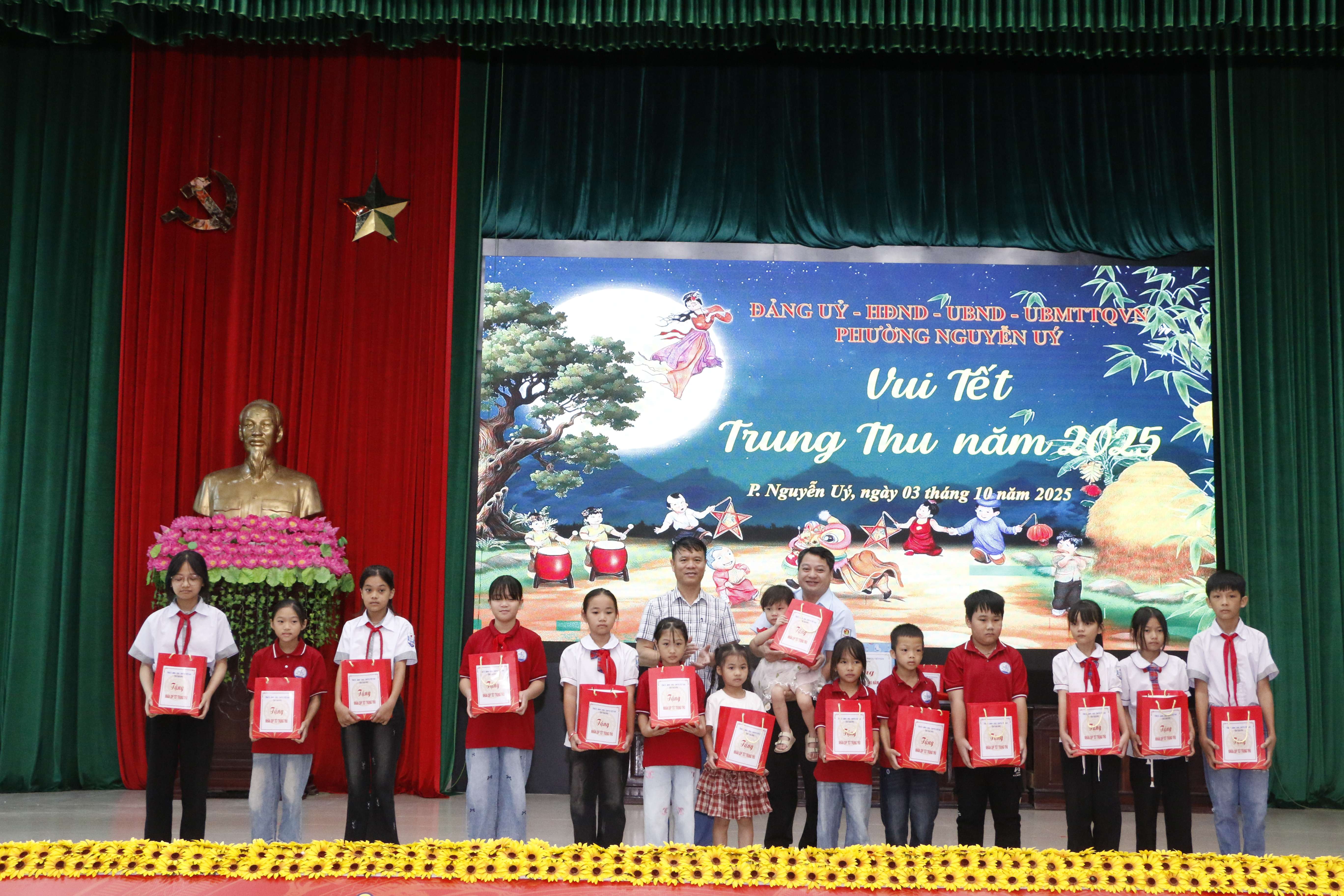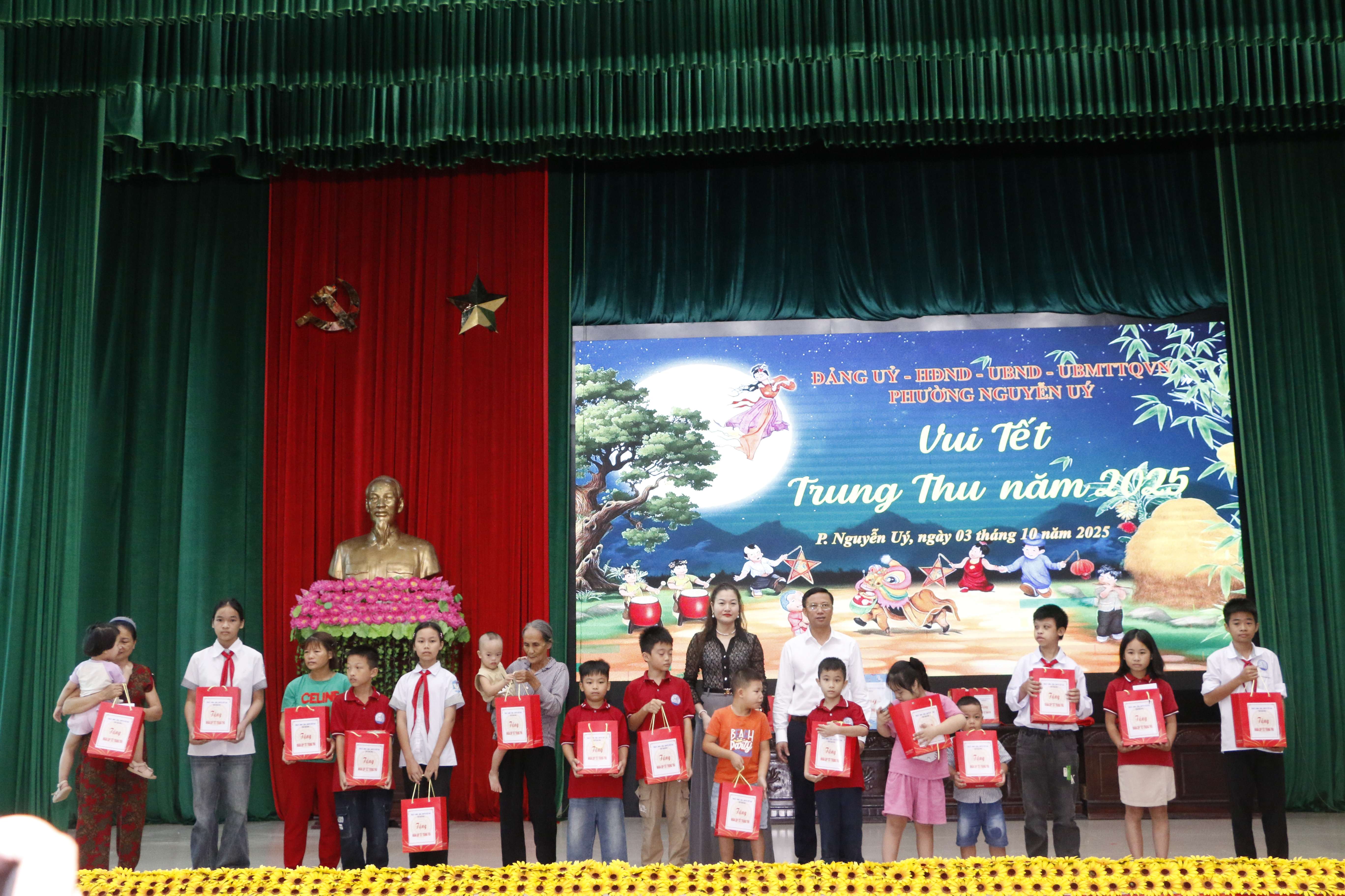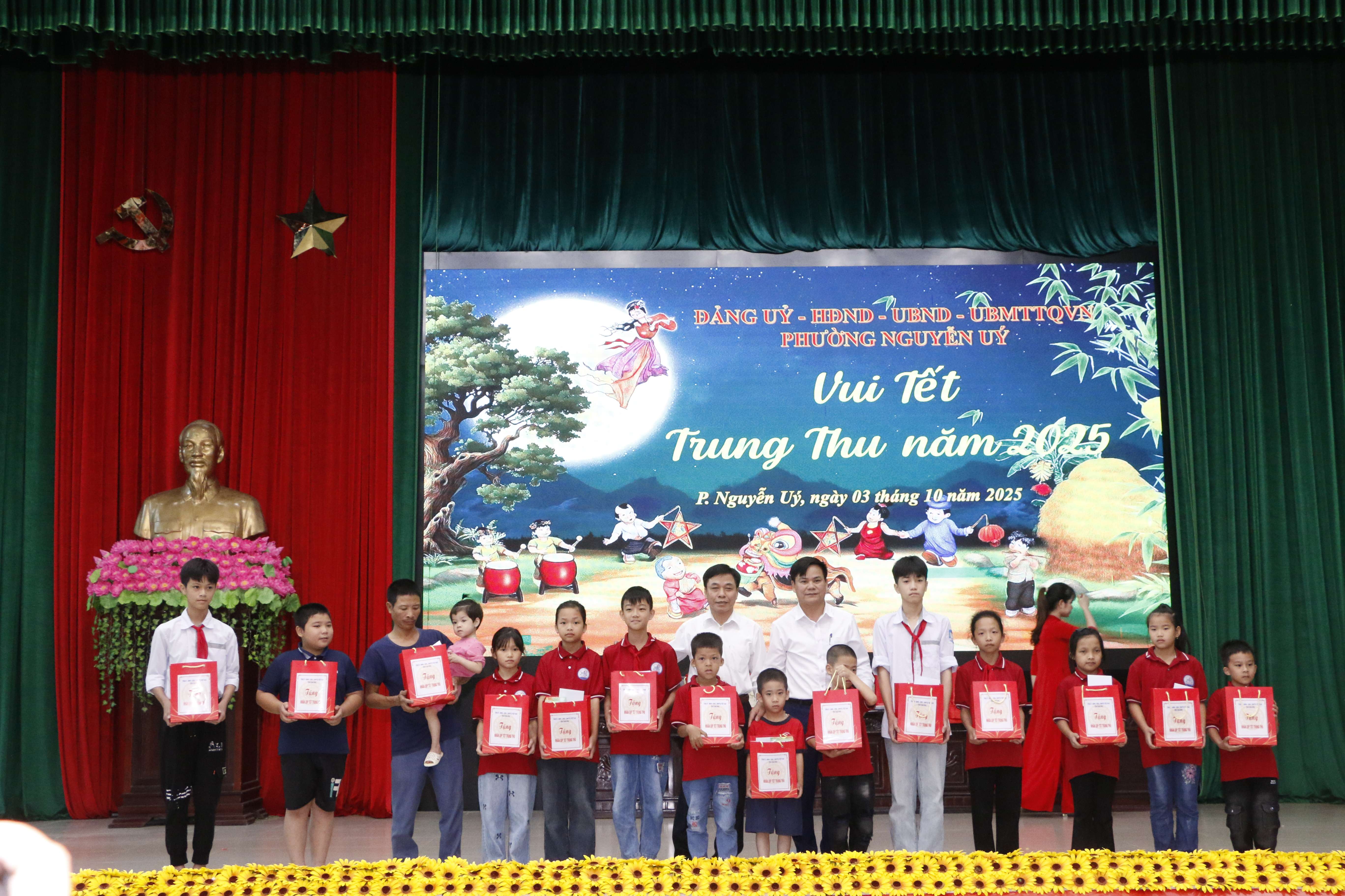 Tại Chương trình, Đồng chí Đặng Thanh Sơn – Phó Chủ tịch thường trực Hội đồng nhân dân tỉnh đã tặng quà các cháu thiếu niên, nhi đồng Phường Nguyễn Úy, gửi lời chúc mừng các em có một mùa Trung thu vui tươi, hạnh phúc, động viên các em nỗ lực học tập, rèn luyện để trở thành người có ích. Đồng thời khẳng định các cấp uỷ Đảng, chính quyền, ban, ngành, đoàn thể luôn dành sự quan tâm đặc biệt cho công tác chăm sóc, bảo vệ và giáo dục trẻ em, tạo điều kiện tốt nhất để các em được phát triển toàn diện cả về thể chất lẫn tinh thần. Tiếp tục lan toả mạnh mẽ tinh thần tương thân tương ái, chia sẻ yêu thương với các cháu thiếu niên, nhi đồng trong thời gian tới.