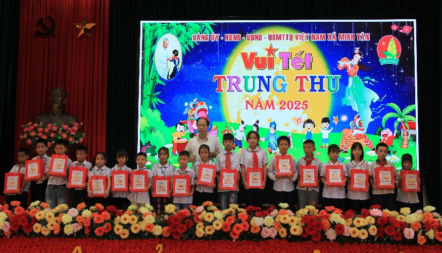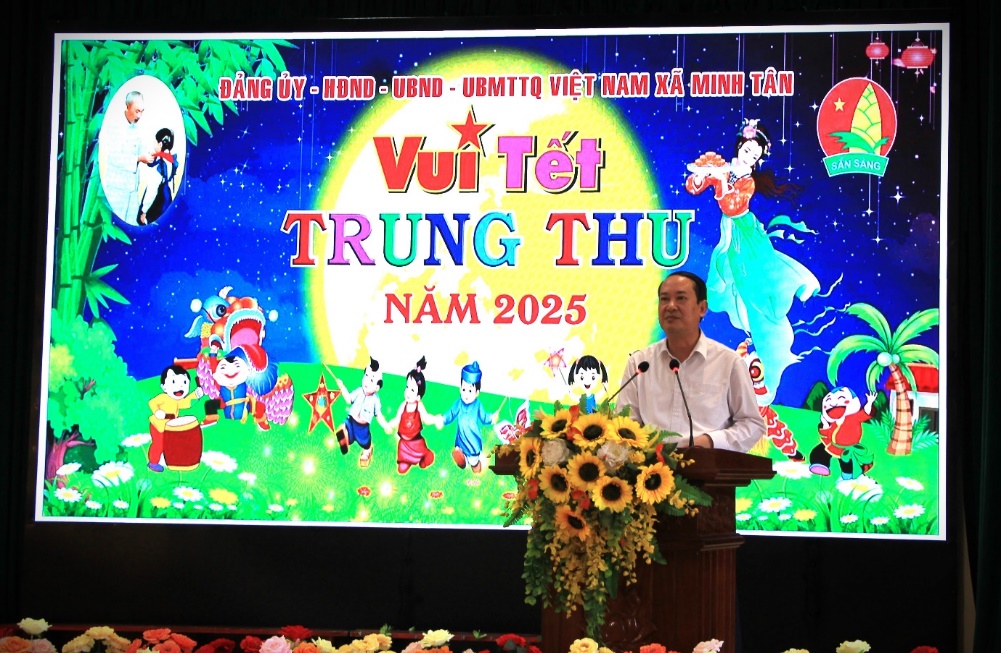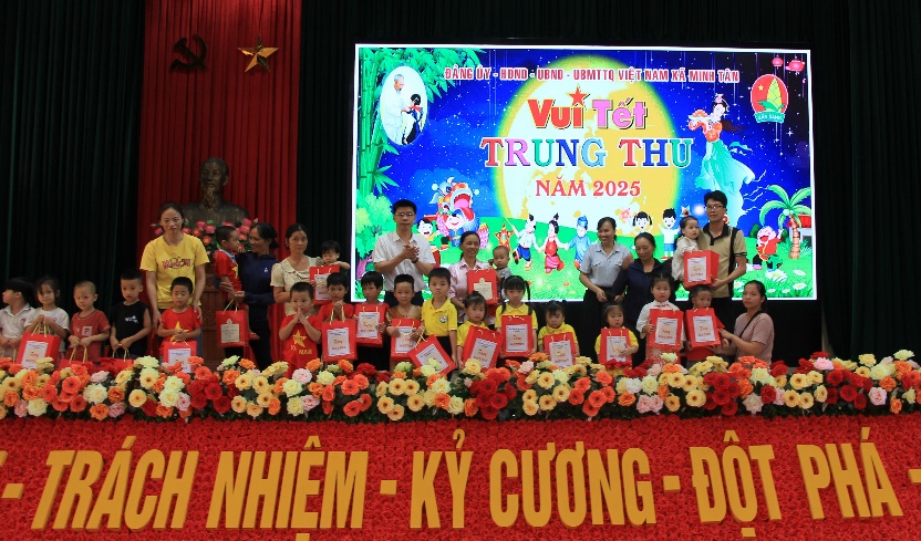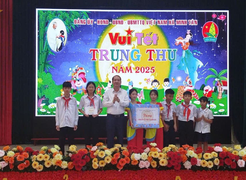 Tại Chương trình, đồng chí Phó Bí thư Tỉnh ủy, Chủ tịch Ủy ban Mặt trận Tổ quốc tỉnh đã tặng quà các cháu thiếu niên, nhi đồng xã Minh Tân, gửi lời chúc mừng các em có một mùa Trung thu vui tươi, hạnh phúc, động viên các em nỗ lực học tập, rèn luyện để trở thành người có ích. Đồng thời khẳng định các cấp uỷ Đảng, chính quyền, ban, ngành, đoàn thể luôn dành sự quan tâm đặc biệt cho công tác chăm sóc, bảo vệ và giáo dục trẻ em, tạo điều kiện tốt nhất để các em được phát triển toàn diện cả về thể chất lẫn tinh thần. Tiếp tục lan toả mạnh mẽ tinh thần tương thân tương ái, chia sẻ yêu thương với các cháu thiếu niên, nhi đồng trong thời gian tới.