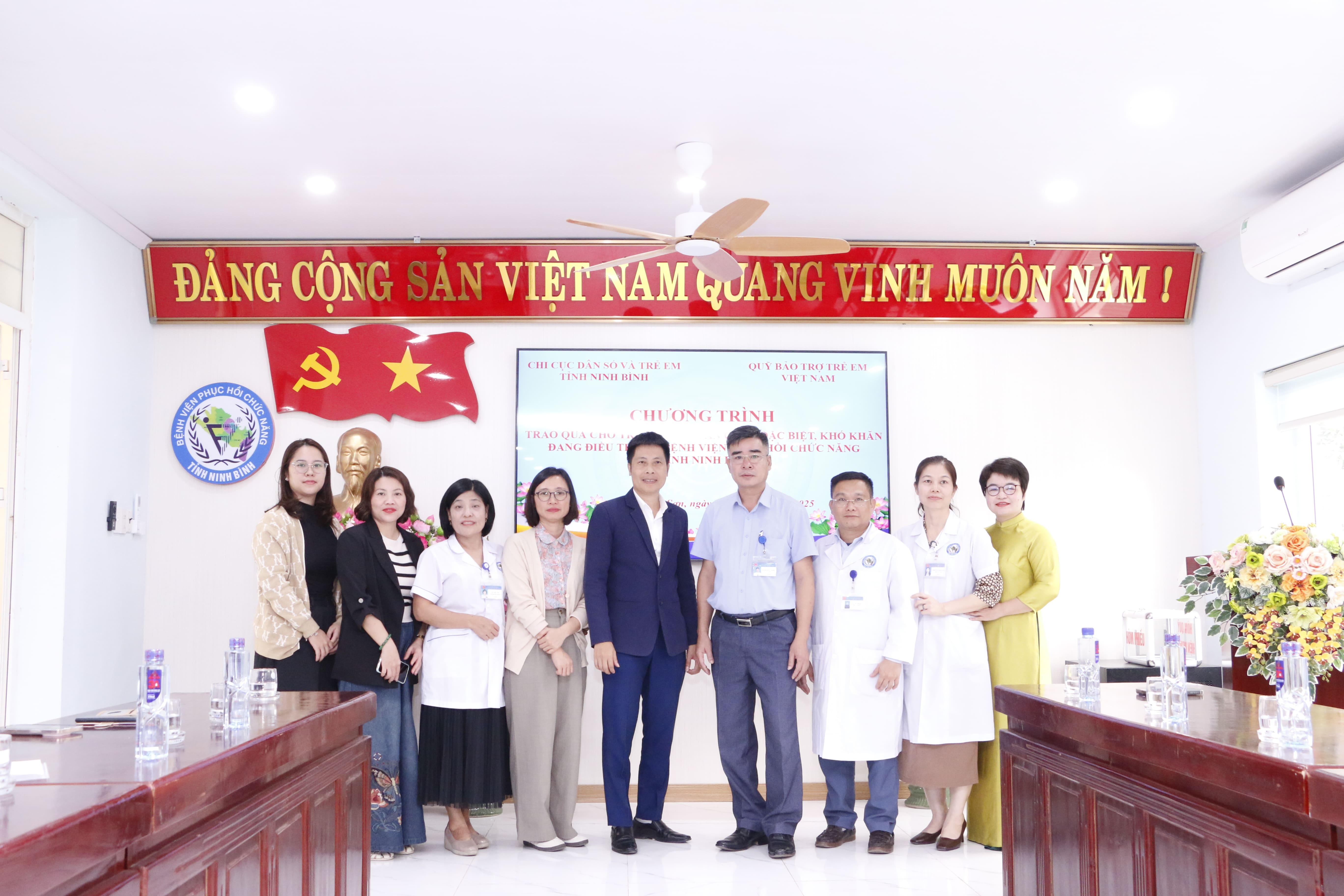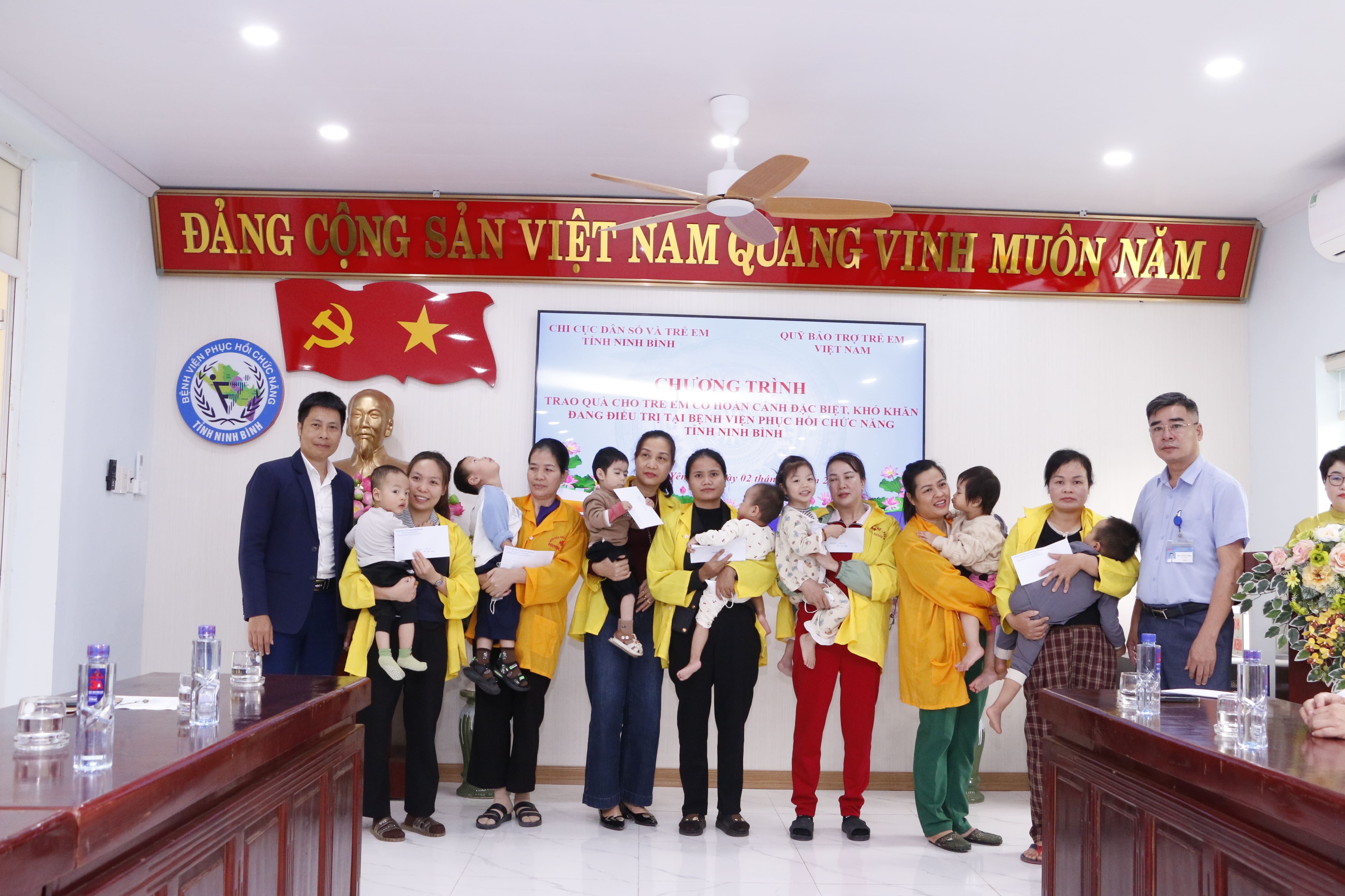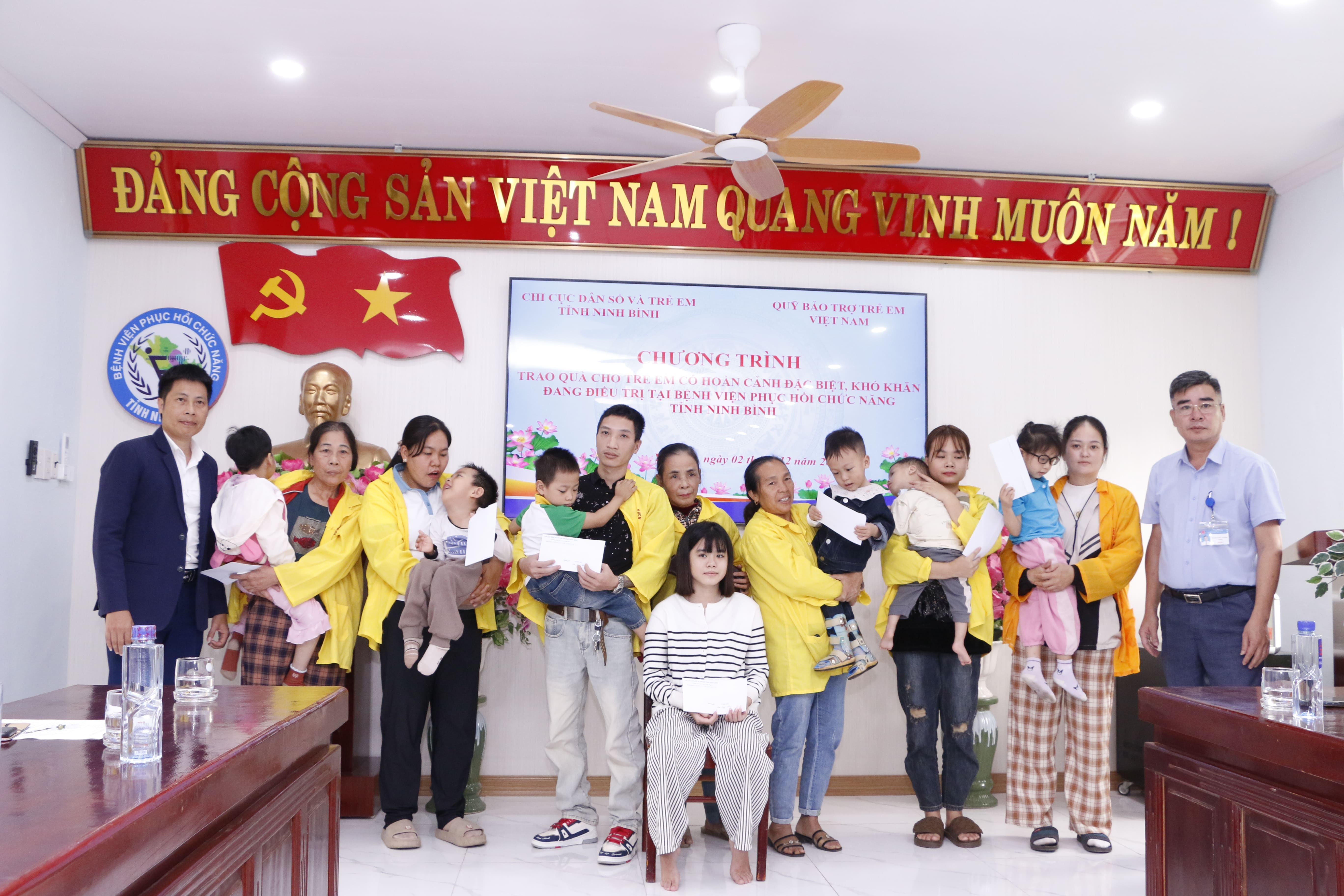 Ngày 02 tháng 12 năm 2025, Chi cục Dân số và Trẻ em tỉnh Ninh Bình phối hợp với Bệnh viện Phục hồi chức năng tỉnh tổ chức thăm hỏi và trao quà cho các trẻ em có hoàn cảnh đặc biệt, khó khăn đang điều trị tại bệnh viện.