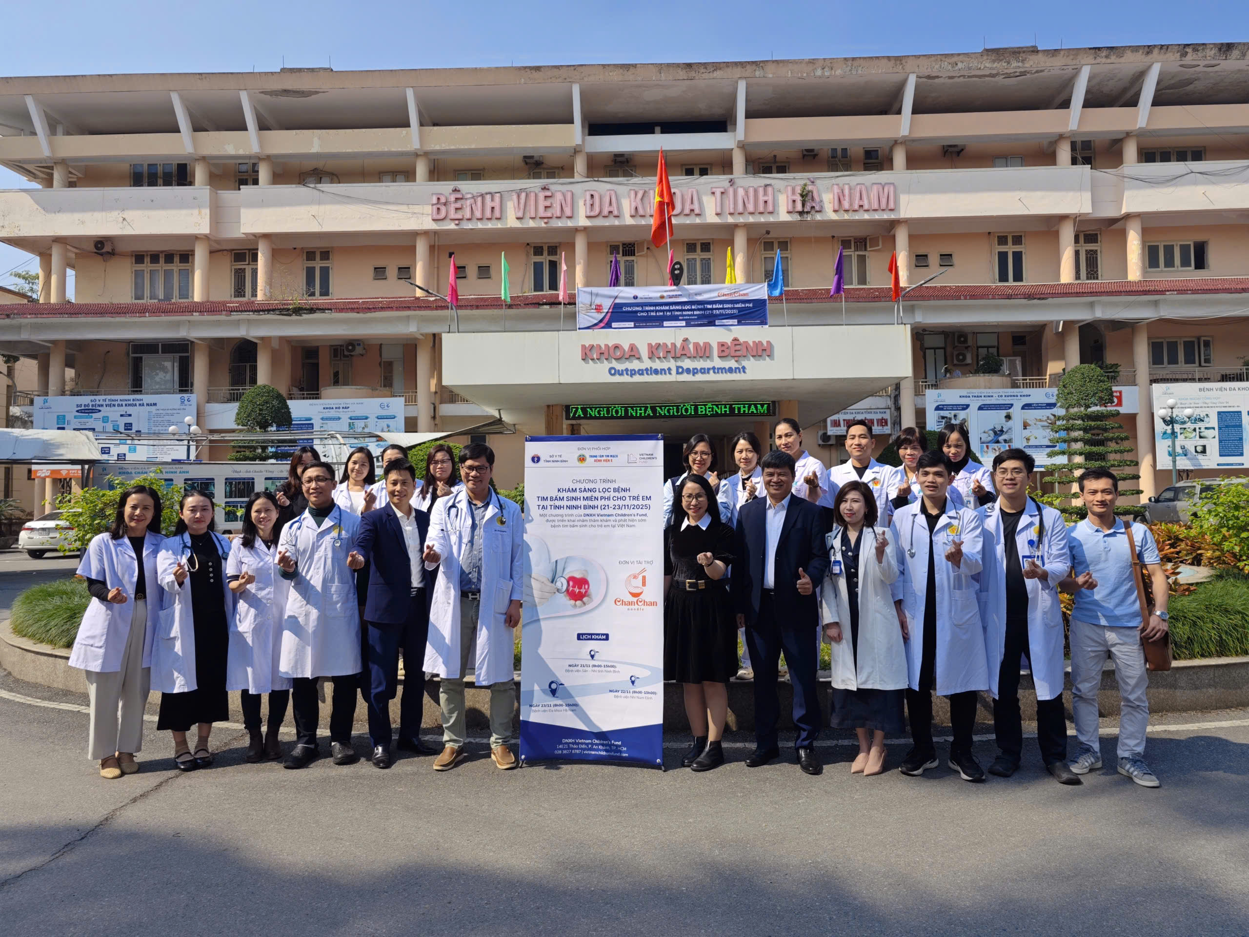 Ngày 23/11/2025 tại Bệnh viện Đa khoa Hà Nam, Chi cục Dân số và Trẻ em tỉnh Ninh Bình đã phối hợp với Trung tâm Tim mạch – Bệnh viện E Hà Nội tổ chức chương trình khám sàng lọc miễn phí các bệnh lý tim mạch cho trẻ dưới 16 tuổi. Hoạt động nhằm phát hiện sớm các bệnh lý tim bẩm sinh hoặc có dấu hiệu nghi ngờ, đồng thời nâng cao nhận thức của cộng đồng về tầm quan trọng của việc chăm sóc sức khỏe tim mạch ở trẻ em.