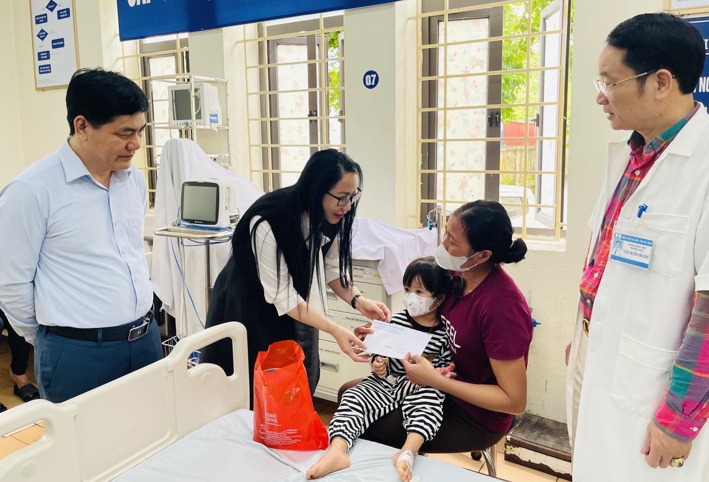 Thực hiện Công văn số 565/QBT-HTTEDV ngày 25/9/2025 của Quỹ Bảo trợ trẻ em Việt Nam về việc hỗ trợ trẻ em có hoàn cảnh khó khăn mắc bệnh ung thư, các bệnh khác có nguy cơ gây hậu quả nghiêm trọng đến sức khoẻ đang điều trị tại các Bệnh viện. Sáng ngày 12/11/2025, đồng chí Tạ Thị Hoa - Chi cục trưởng chi cục Dân số và Trẻ em tỉnh Ninh Bình cùng Giám đốc Bệnh viện Đa khoa Hà Nam đã đến thăm, tặng quà cho 6 em có hoàn cảnh khó khăn, bị bệnh hiểm nghèo đang nằm điều trị tại Khoa Hồi sức cấp cứu nhi và khoa Nội thận lọc máu, Bệnh viện Đa khoa Hà Nam.
