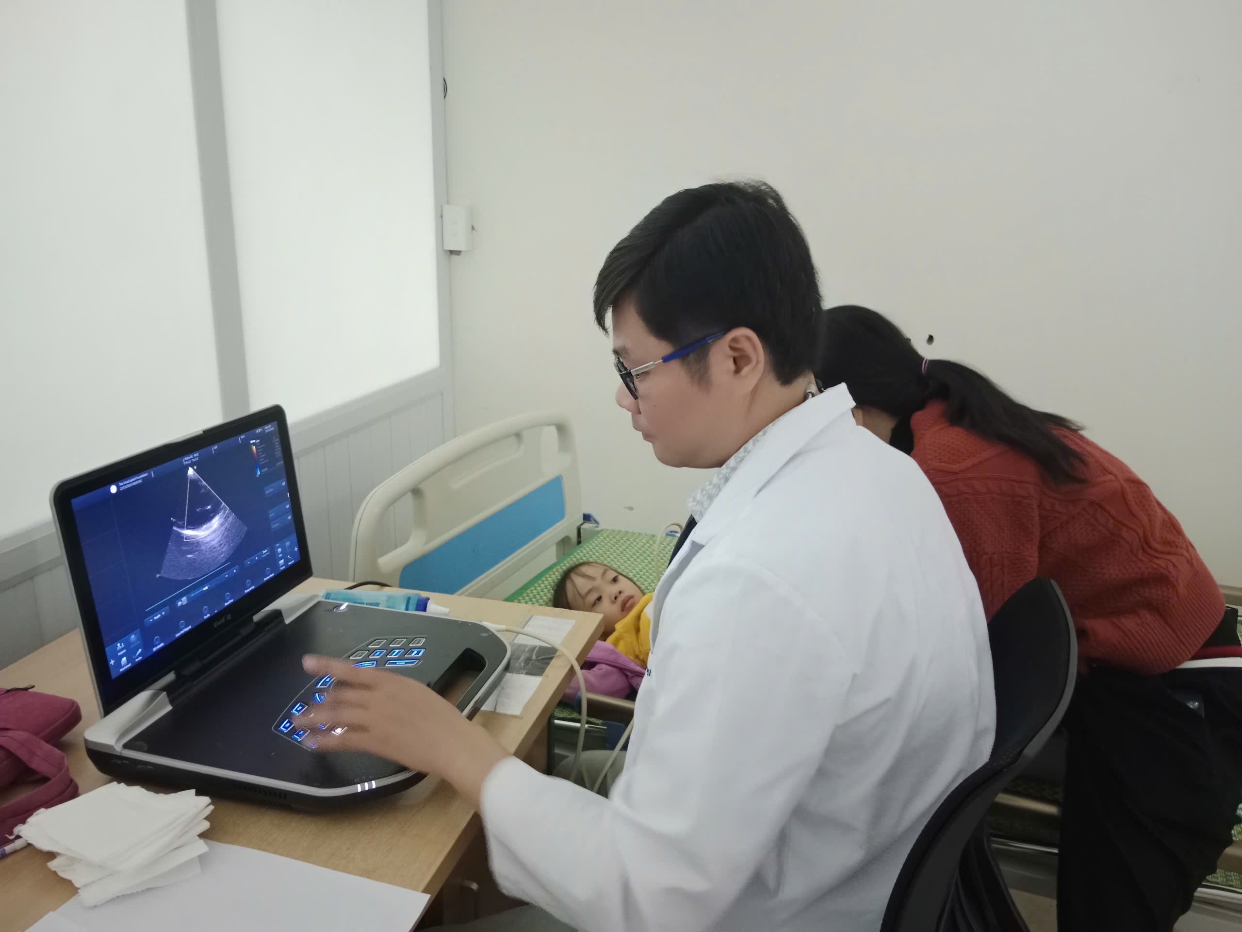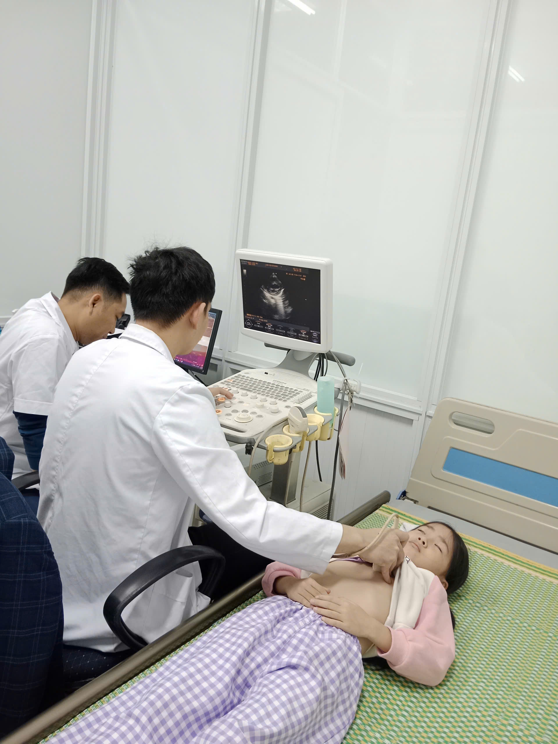 Đoàn chuyên gia tim mạch của Bệnh viện E Hà Nội cùng đội ngũ bác sĩ nhi khoa của Bệnh viện đã tiến hành khám lâm sàng, siêu âm tim, đo điện tim và đánh giá chuyên sâu nhằm phát hiện sớm các dị tật tim bẩm sinh cũng như các bệnh lý tim mạch thường gặp ở trẻ nhỏ.