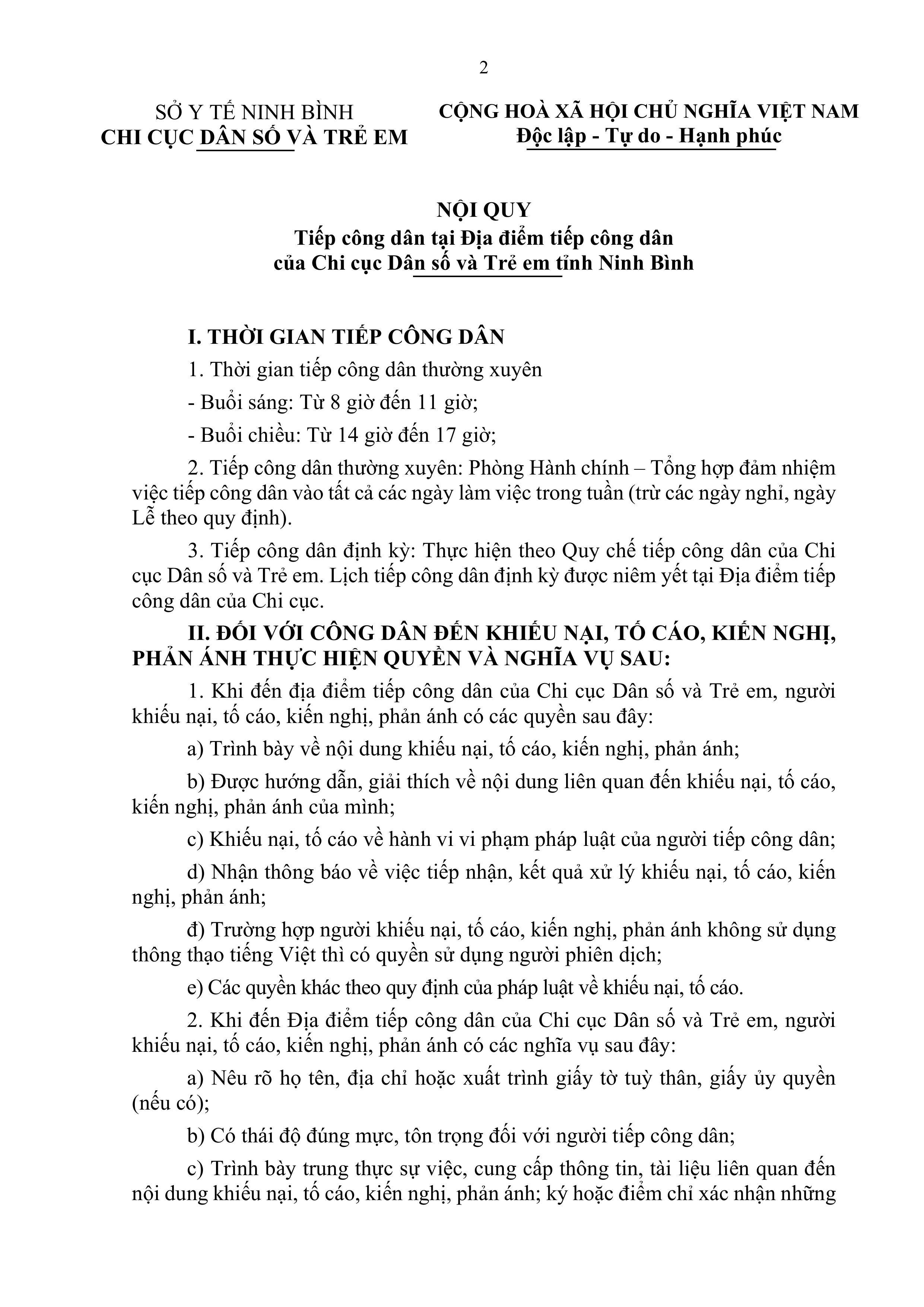 Quyết định ban hành Nội quy tiếp công dân tại Địa điểm tiếp công dân của Chi cục Dân số và Trẻ em tỉnh Ninh Bình