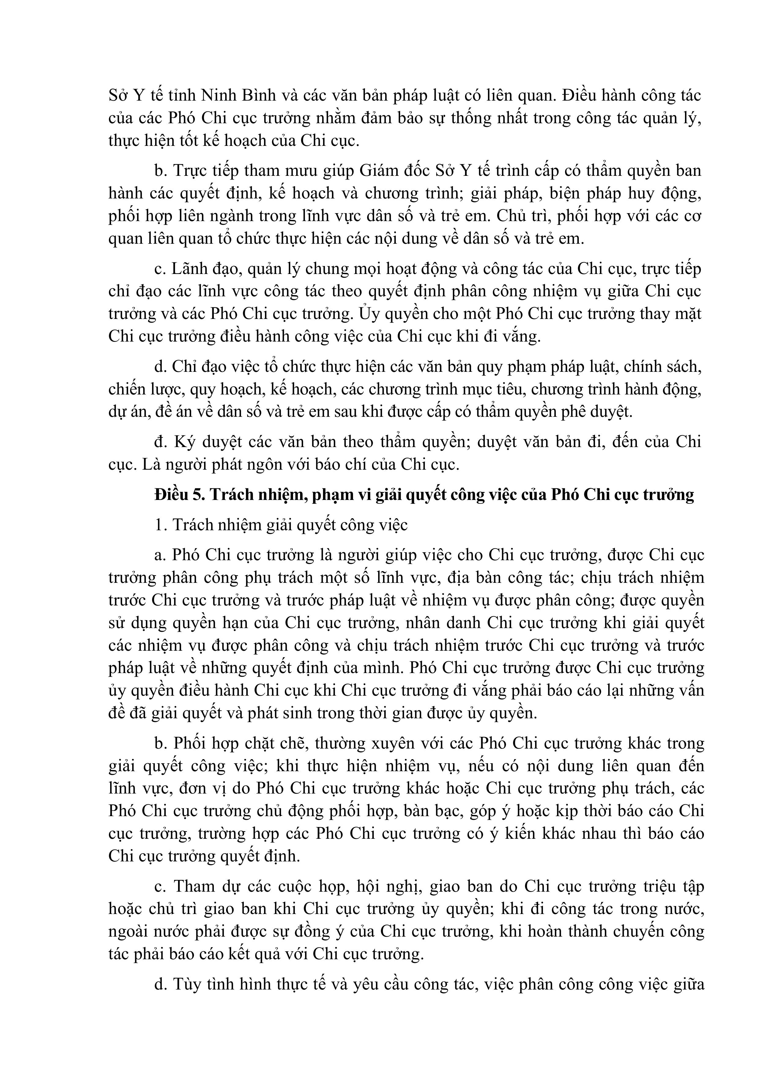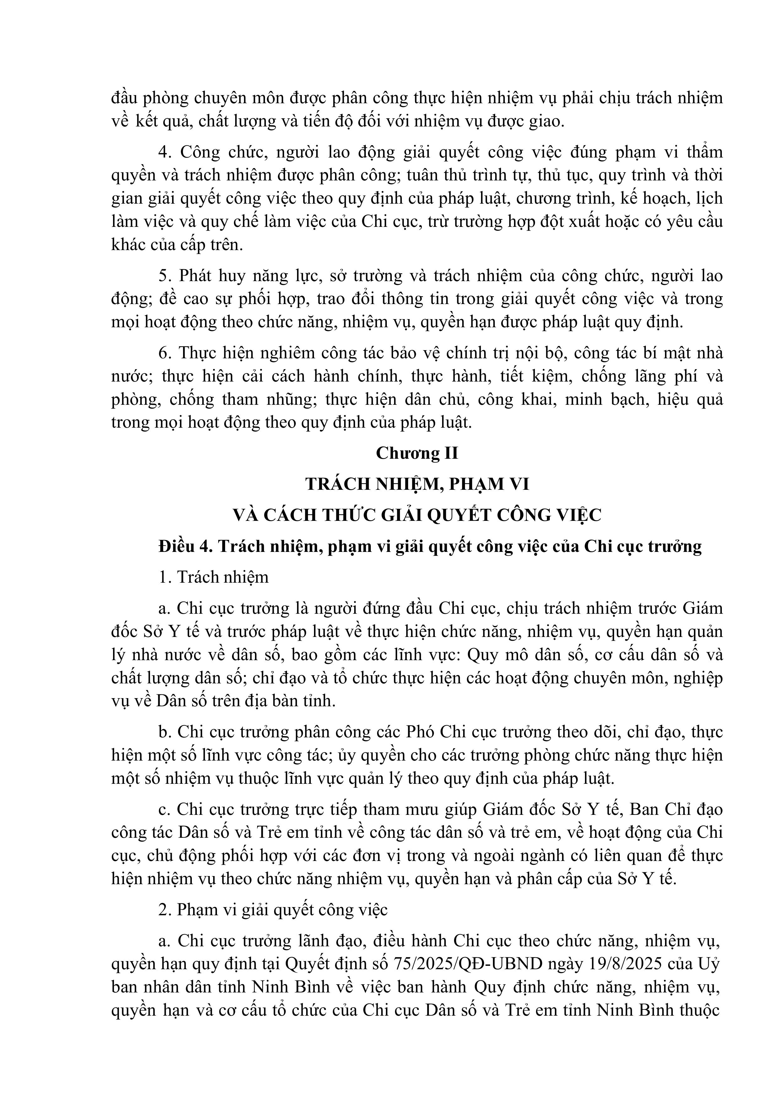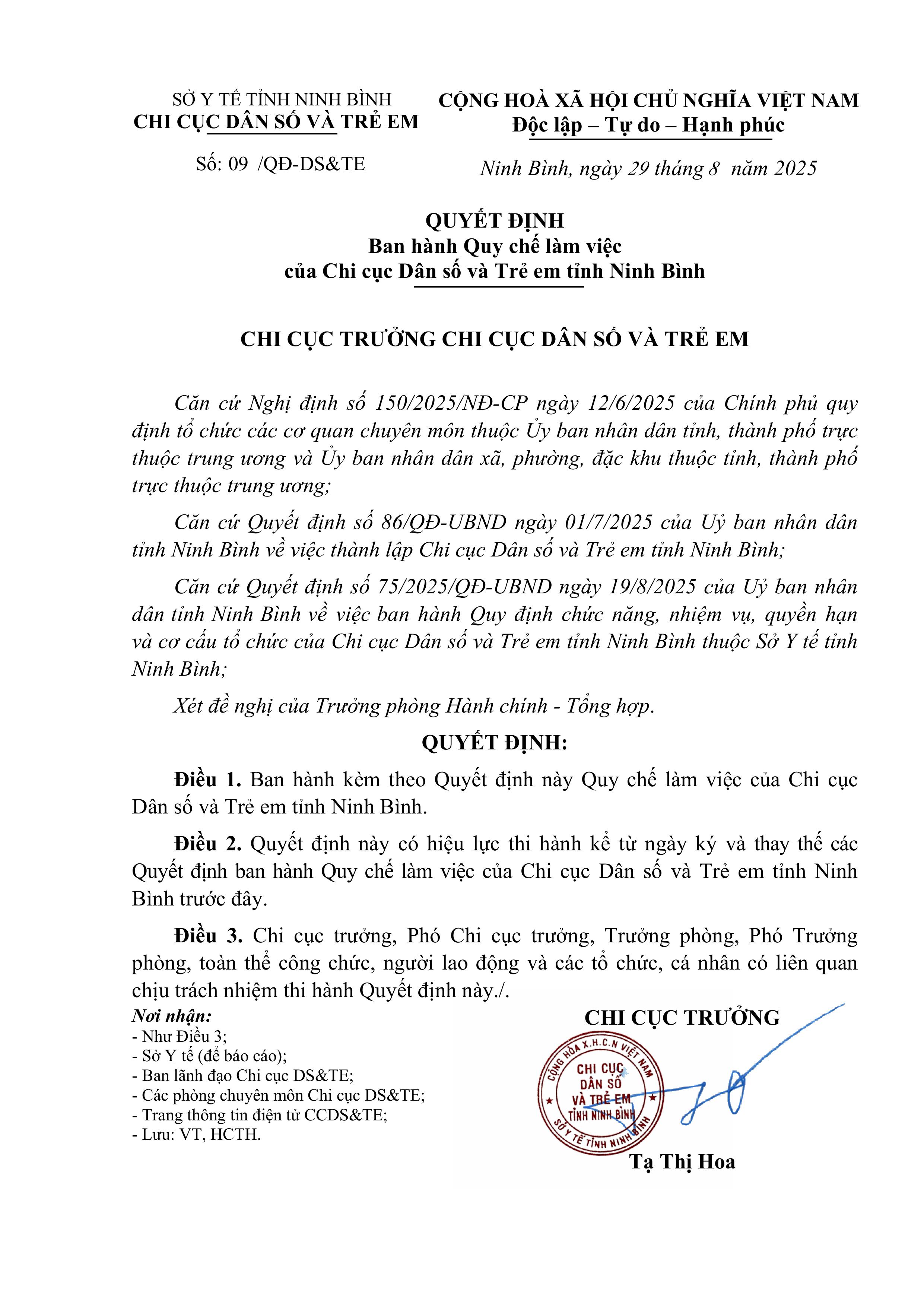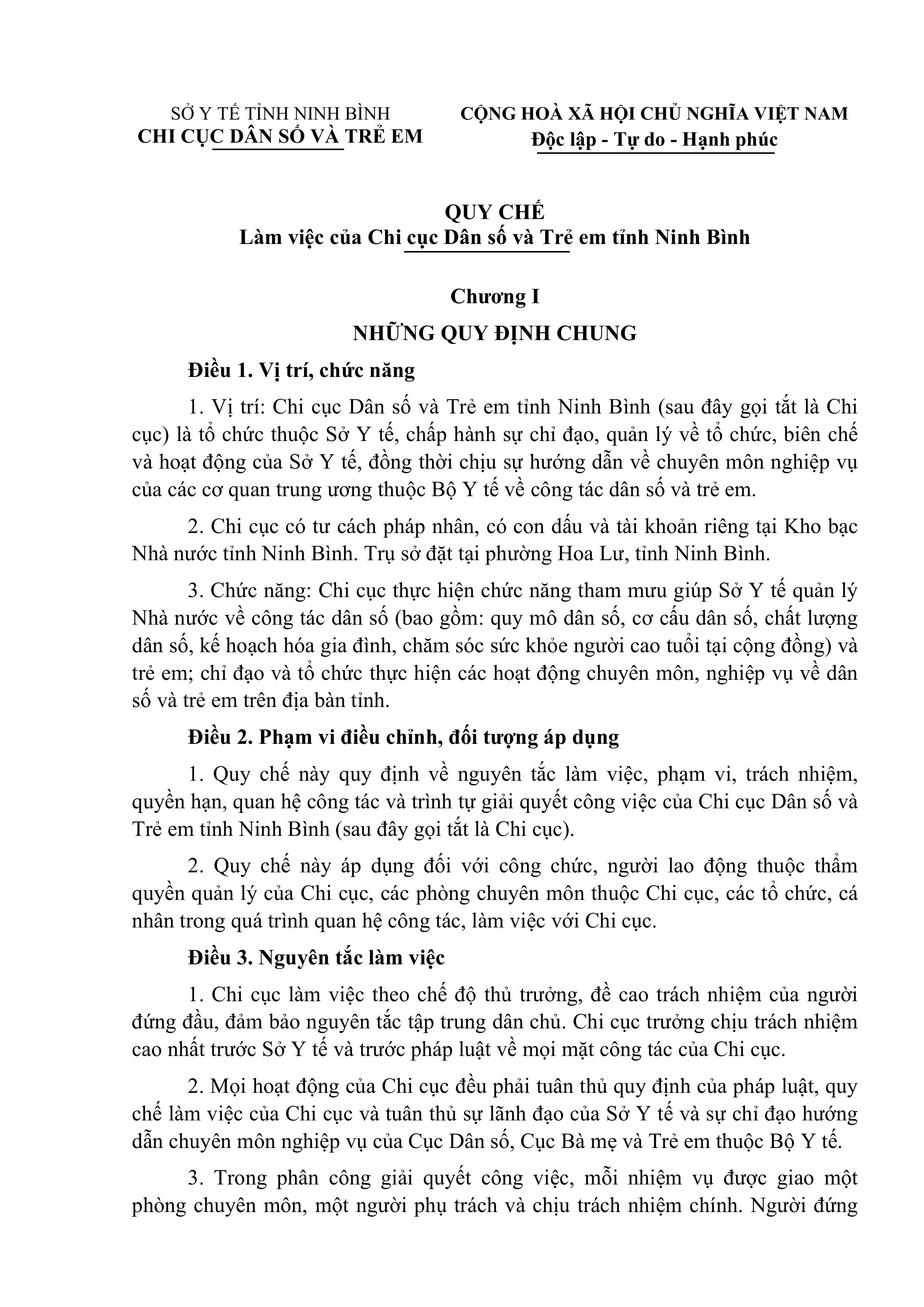 Quyết định ban hành Quy chế làm việc của Chi cục Dân số và Trẻ em tỉnh Ninh Bình